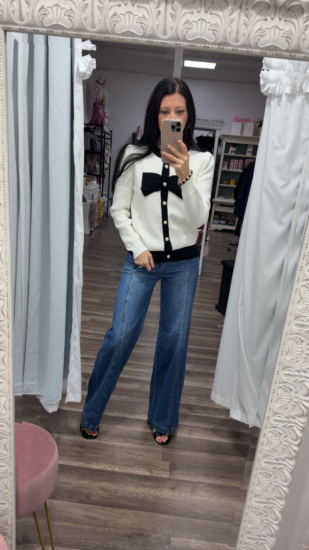 The Presley Cardigan brings a playful twist to cozy with its large bow detailing and charming front button closure. Soft and stylish, it’s perfect for adding a touch of whimsy to your everyday look while keeping you warm and comfortable.