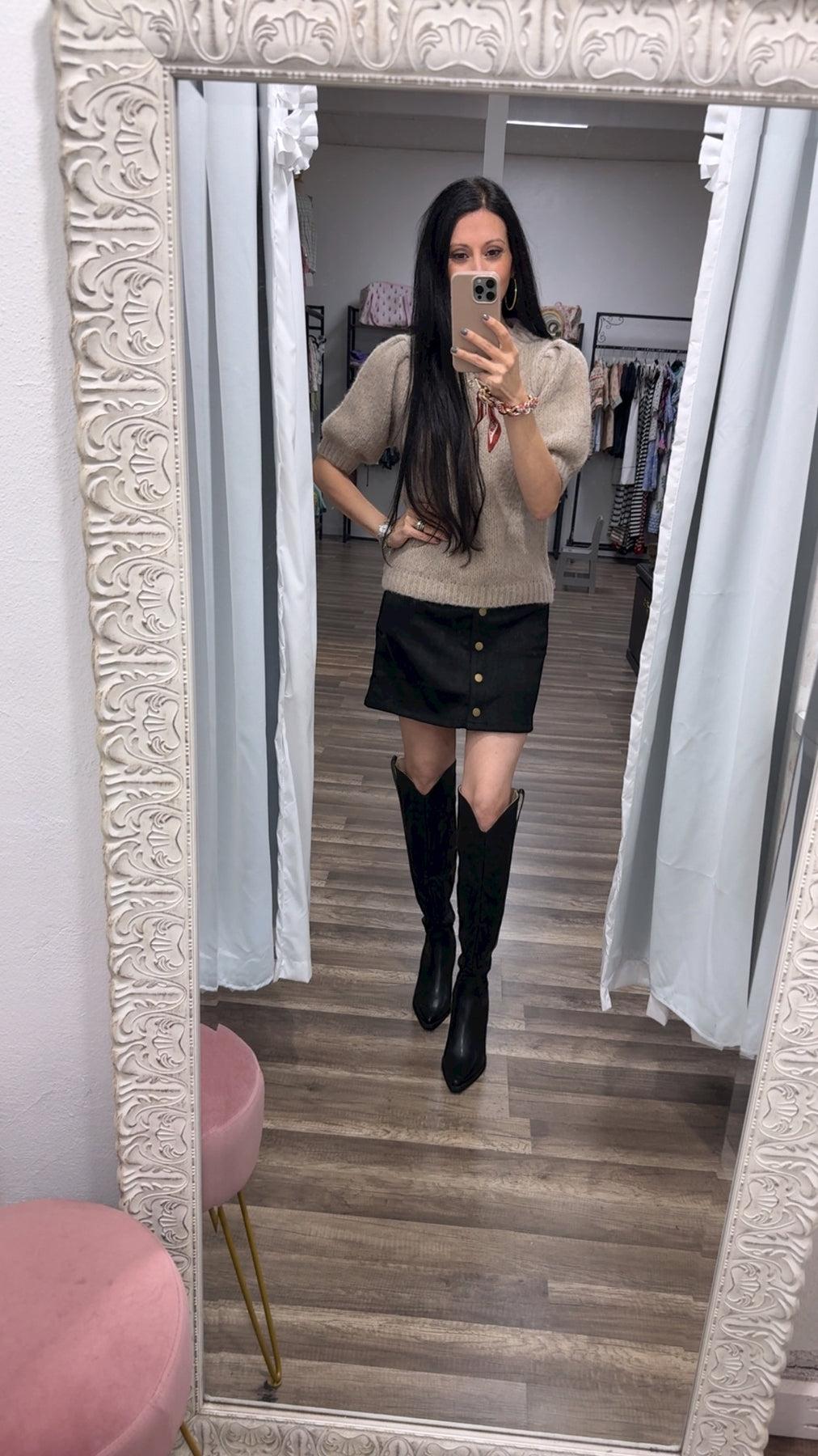 Meet the Ellis Top—your new go-to sweater for effortless style! This cozy knit features adorable puff sleeves that bring just the right amount of drama and charm to your everyday look. The soft, huggable fabric feels amazing against your skin, while fitted cuffs and a defined hem keep everything looking polished and put-together. Whether you're dressing it down with jeans or elevating it with a skirt, this versatile sweater is ready for whatever your day throws at you. Comfort meets chic in one delightful package!