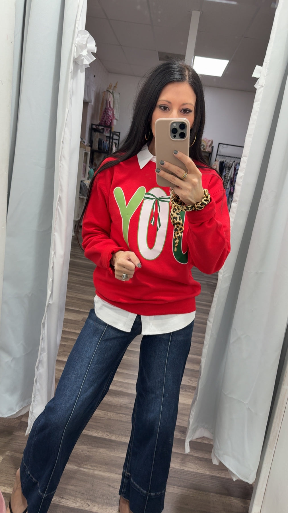 Bring festive cheer with the Joy Bow Sweatshirt! This cozy sweater features a playful bow design that adds a touch of whimsy to your holiday wardrobe. Perfect for spreading joy at parties or relaxing by the fire, it combines comfort and fun in one festive package. Wrap yourself in holiday spirit and let every moment feel extra merry!