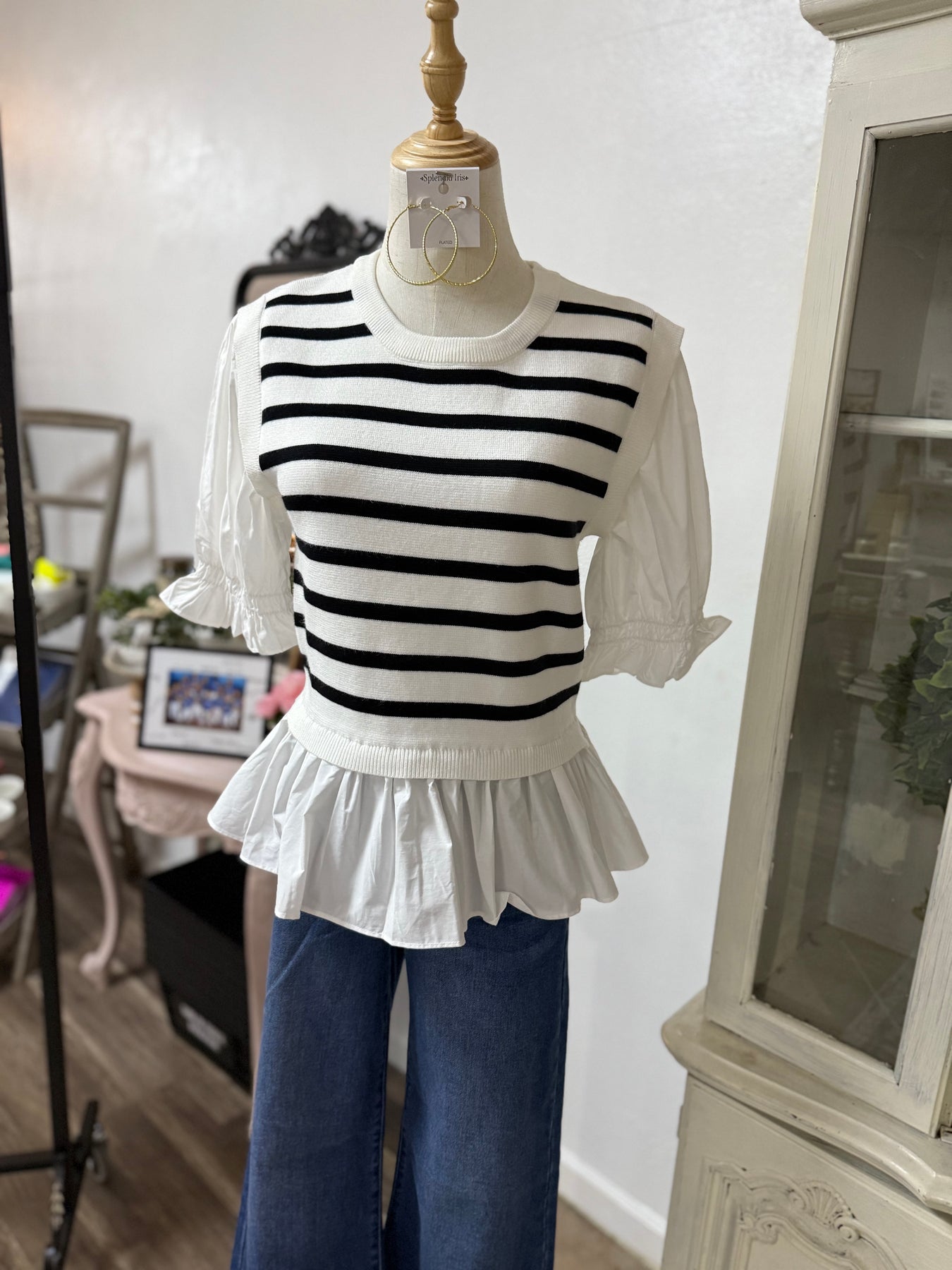 The Adele Top combines mixed media fabrics with a distinctive striped knit pattern, delivering a unique texture and visual appeal. Its lightweight construction ensures comfort while highlighting the sophisticated interplay of materials. Ideal for layering or as a standalone piece, this top enhances your wardrobe with subtle complexity and modern flair.
