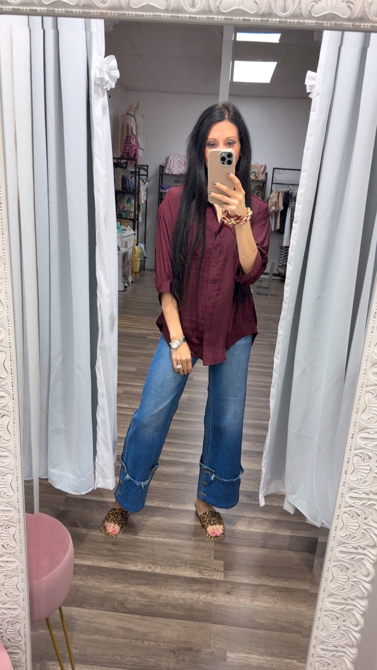Meet the Joey Top—your new go-to for effortless style that works as hard as you do. Crafted from luxurious silky satin, this oversized blouse drapes beautifully while the relaxed fit and curved hem give you room to move. The 3/4 sleeves and single chest pocket strike that perfect balance between polished and laid-back, making it equally at home tucked into tailored trousers or flowing over your favorite jeans. Versatile, comfortable, and undeniably chic—this is the blouse you'll reach for again and again.