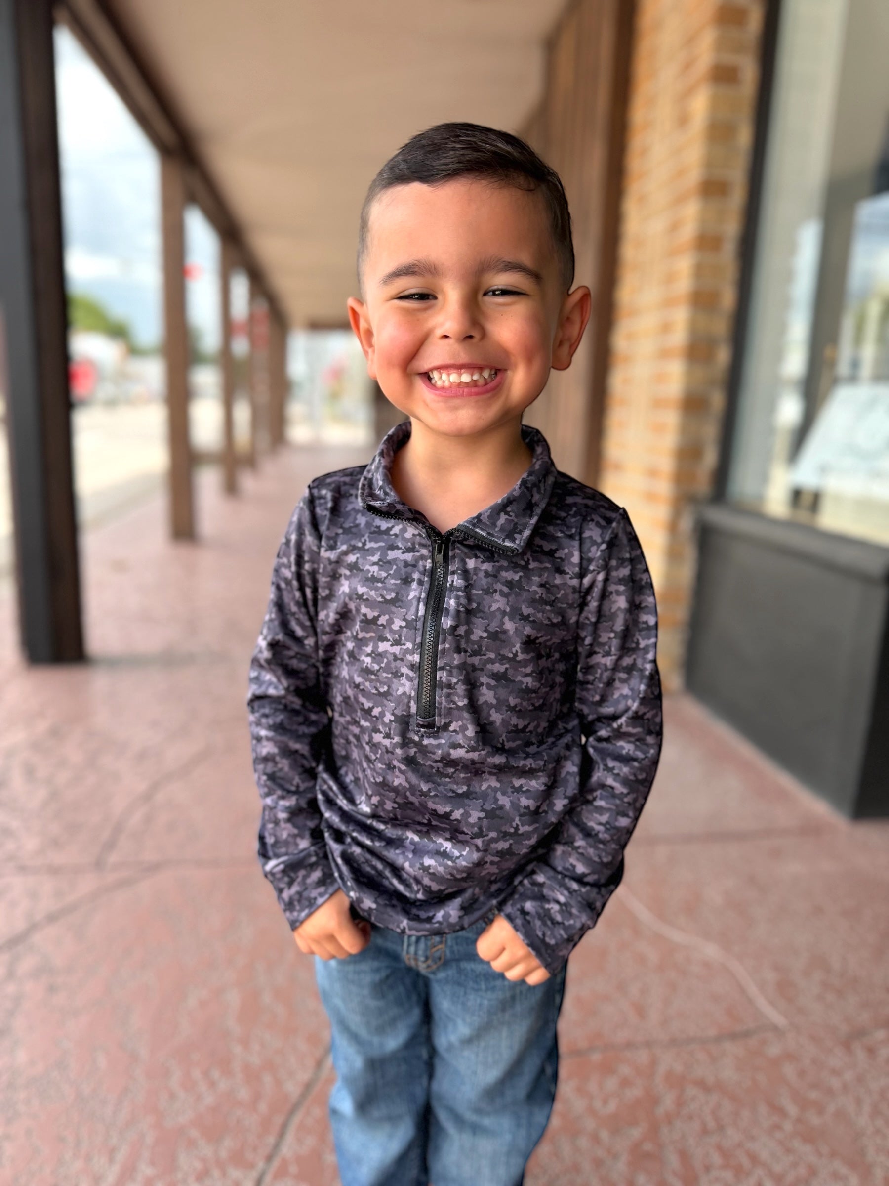 Keep your little one cozy and cool in the Midnight Camo Boy Quarter Zip. With its fun camouflage pattern and easy half-zip design, it’s perfect for playtime adventures or casual outings. The soft fabric offers all-day comfort, while the zip front makes it simple to layer up or down. A stylish and practical pick for any active boy’s wardrobe!