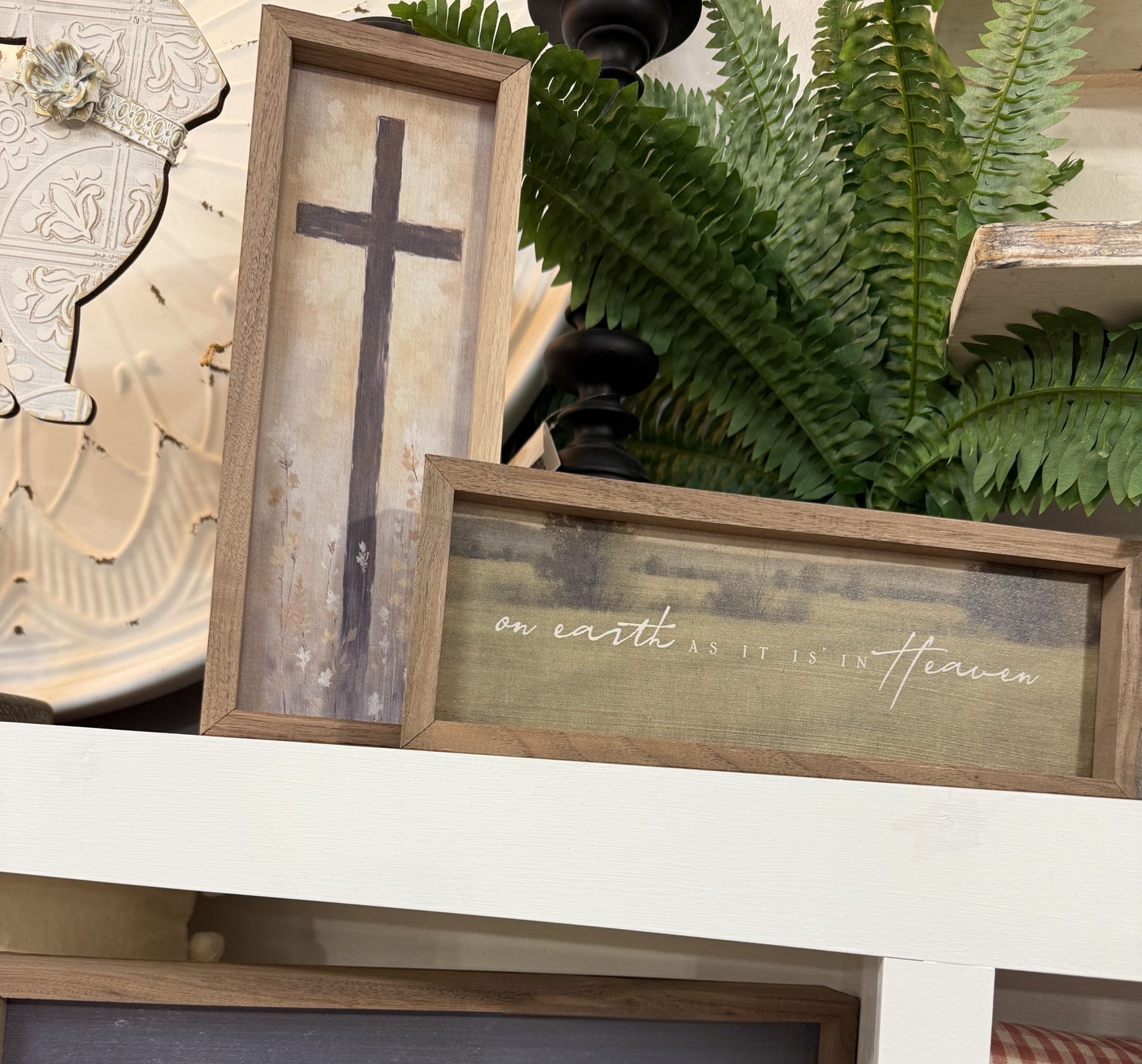 Featuring a solid wood insert with intricate, faith-inspired designs, this piece is framed in rich walnut to highlight the natural wood grain. With its elegant craftsmanship and meaningful detail, it’s a beautiful addition to any home décor collection, offering timeless style and quality.