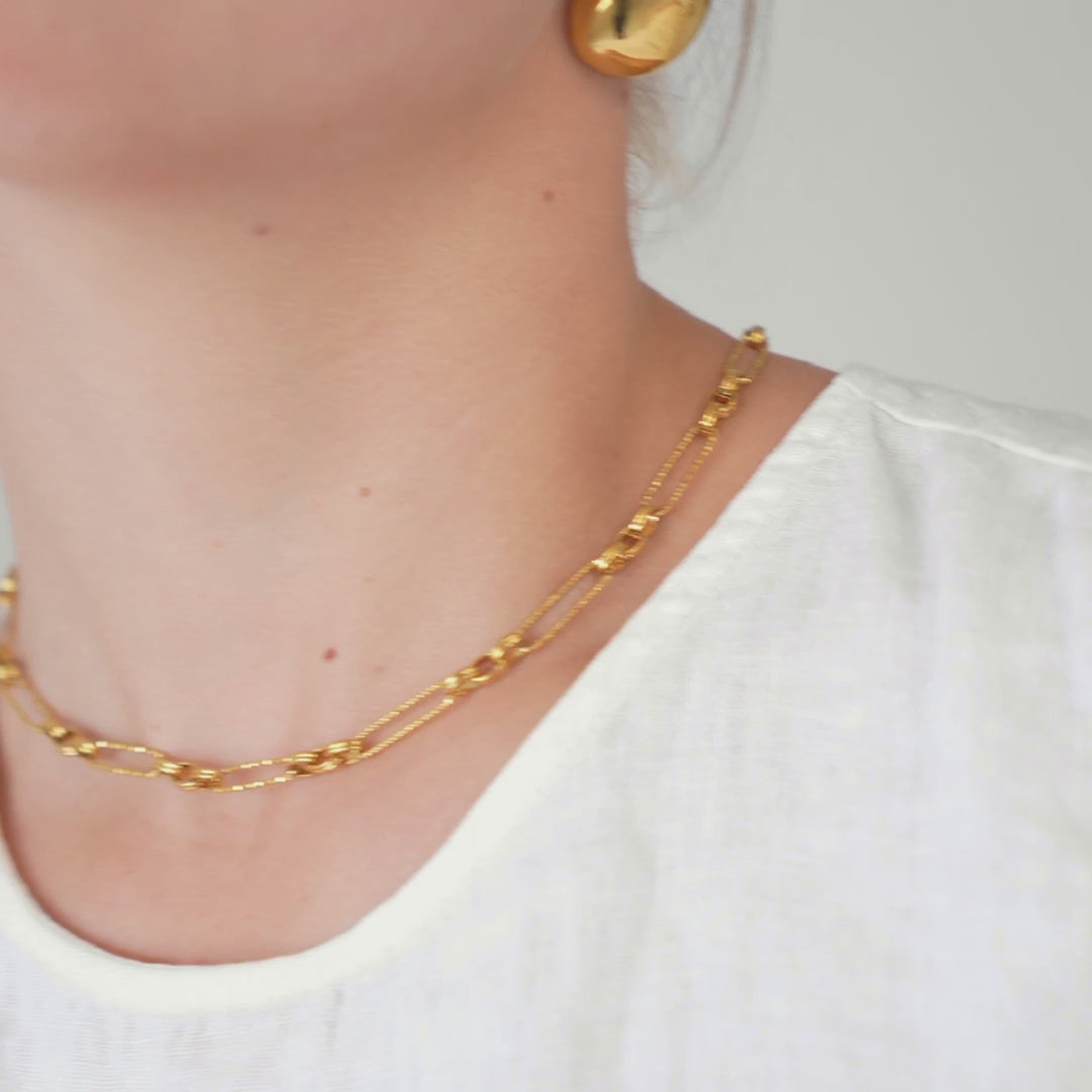 Modern and sleek, this shiny paperclip necklace is the ultimate in minimalist style. Perfect for everyday wear and layering. Made from waterproof 18K gold-plated stainless steel.